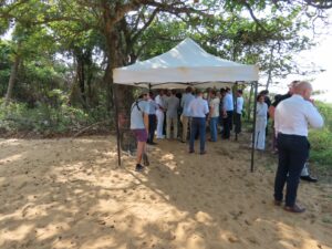 Il a été accueilli par les représentants de l’Association Kwata, du Conservatoire du littoral, de l’Office français de la biodiversité (OFB), de l’Office national des forêts (ONF) et de l’Etat sur le site des Salines de Montjoly, en présence du maire de la ville, Claude Plénet et de son 1er adjoint, Serge Félix.