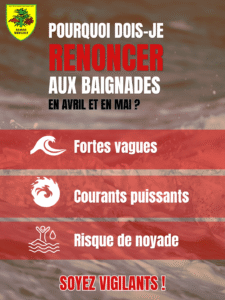 De fortes houles et de puissants courants marins rendent la baignade particulièrement dangereuse durant les mois d’avril et de mai.