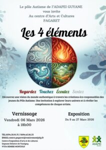 Les jeunes du pôle autisme de l’ADAPEI Guyane vous proposent du 9 au 27 mars 2026, une vision personnelle de la vie.