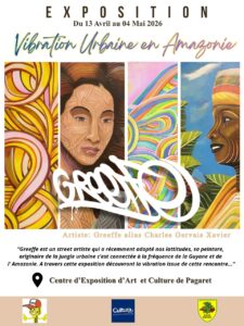 Découvrez l’exposition « Vibration urbaine en Amazonie » au Centre Pagaret du 13 avril au 4 mai 2026 proposée par l’artiste street, Greffe alias Charles Gervais Xavier.
