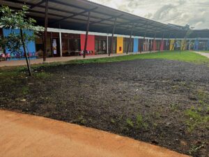 Le bâtiment d’une superficie totale de 2400m2, est composé d’une salle de motricité, d’une ludothèque/bibliothèque, d’un réfectoire.